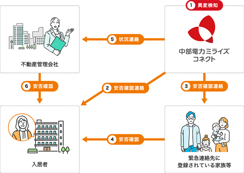 - 中部電力ミライズコネクトが入居者の一次的な安否確認を行うため、ご担当者さまの日頃の業務逼迫を回避できます。