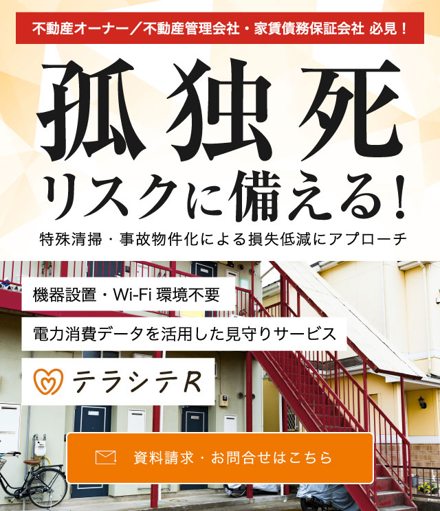 - 孤独死の予防・早期発見を行うので、万が一のことがあっても物件価値を保全できます。