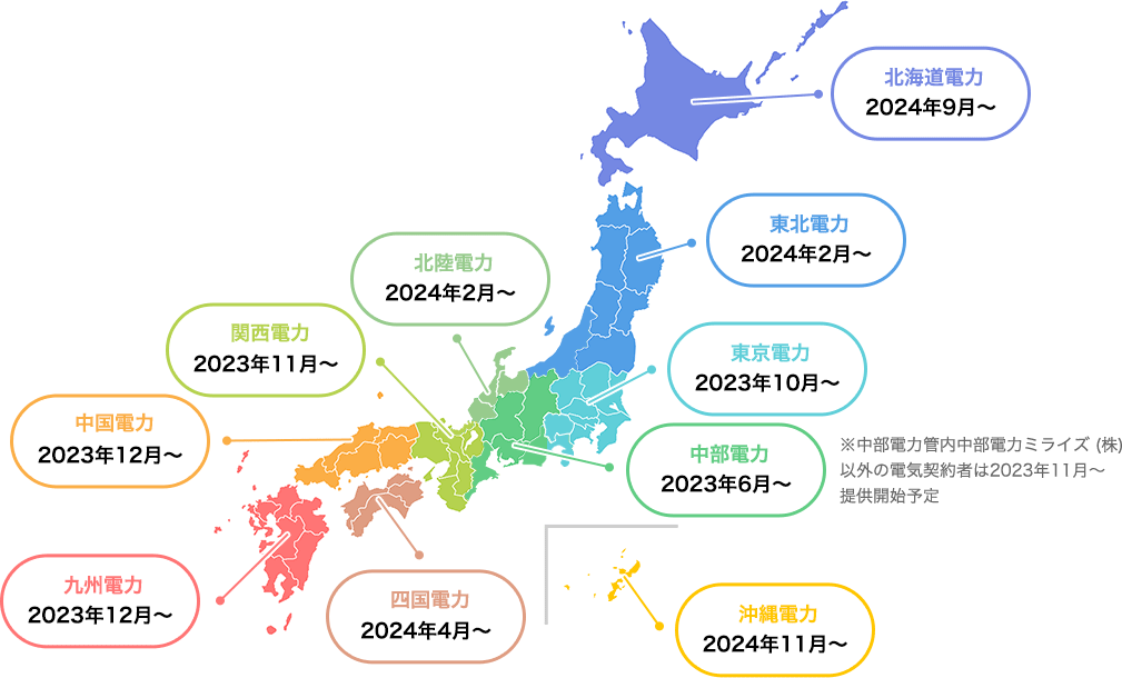 ※中部電力管内中部電力ミライズ(株)との電気契約者以外への提供については、一般社団法人